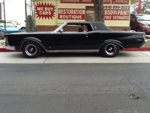 YOU CAN OWN THIS SINISTER MARK III WITH A BAD BOY ATTITUDE. THIS WAS THE TYPE OF CAR USED IN THE 1977 MOVIE "THE CAR". 1971 Lincoln Continental Mark III being offered for sale. 1971 saw the Golden Anniversary for the Lincoln marque and the third and final year of the Mark III. Little changed from the 1970 model; tinted glass became standard, as did automatic climate controlled air conditioning and SureTrak anti-lock brakes. Horsepower remained unchanged at 365, but the 460cid V8 engine gained a more sophisticated thermostatic air cleaner assembly with its associated ductwork. This Lincoln has had a complete engine rebuild and balancing around 3 years ago including all belts, hoses, fuel pump, water pump, coil, all plugs and wires, along with vacuum lines, front brakes, new power brake booster, new distributor. I have supporting documentation. The seats, headliner and carpeting are in excellent condition. Straight body lines with a beautiful black pearl paint job makes this car a real head turner. Barone 15" wire wheels with new tires. Duel exhaust. One of a kind. Serious buyers only. Woodland Hills Quality Motors 22055 Ventura Blvd Woodland Hills, CA 91364 818-999-3523 |
