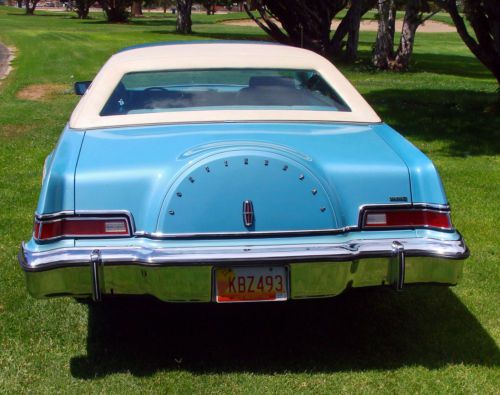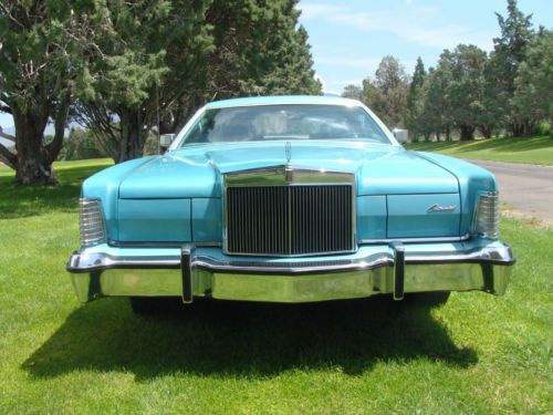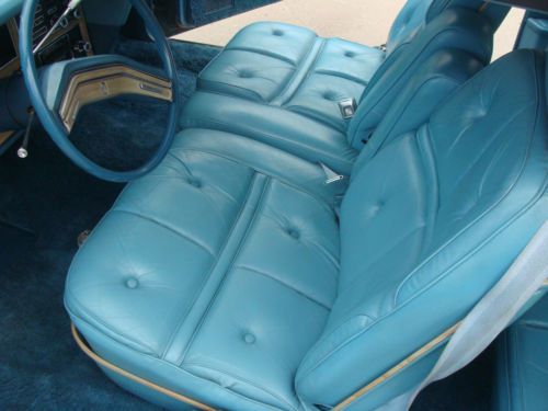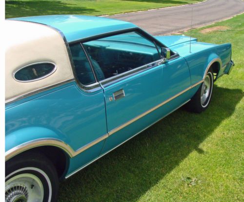 1976 Lincoln Continental Mark IV. No Reserve, Special Givenchy Designer Series. The Givenchy is the rarest of the 1976 Designer Series Marks, with only 1,500 ever made. Its stunning Diamond Fire aqua paint with matching leather seat interior offset by the white vinyl roof and side moldings make this one of the sweetest color combinations ever. Great Chrome throughout, including the belt line Signature Series Chrome (if you've looked at Marks you know these pieces are hard to find with good chrome). This car always turns heads. Only 35,500 documented miles. Note the correct era date coded plug wires and engine compartment. All the panels are original and still carry their paint inspection marks (see pics). You can get in this car and drive it home. Please note the serial numbers on the tires indicate that these tires were purchased in the 1970s or 1980s (most likely the 1980s), adding further evidence of the cars low mileage. These tires are old old so if you want to drive this car other than around the block, please get new tires first. New painted a few years ago (modern day base coat clear) and its paint is in good condition with only minor scratches and blemishes. The car is a joy to drive and they just don't make them that ride and drive like this anymore, the ride is like being on a cloud. Certified funds, Cashier Checks, personal checks accepted. Checks must clear before delivery. We will gladly assist on the logistics of transportation if you need.