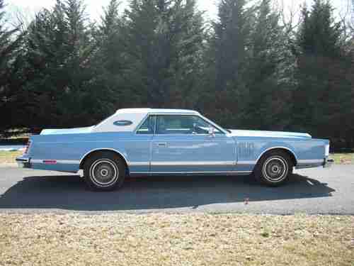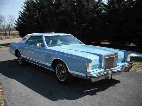You are bidding on a 1978 Lincoln continentla Mark V 2 door. It is a survior with 67k miles on it. The majority of the paint appears to original. The paint is very nice for it's age, but is not perfect. It is a driver, not a show car. It was in a private collection for the past 13 years. The interior is very, very nice. The wheels ar nice with relatively new tires. The car runs and drives great. The air works but unsure how well since it is still winter. Overall it is a nice unmolested car. There are a couple of minor issues: the radio antenna needs fixed, the gas guage works intermittantly, and the is minor rust starting on the bottom of the LF fender. It is also missing teh spare tire. I bought the car because when I was in high school all the rich kids had lincolns and t-birds. I drove a duster. It is a great car, but I really don't have room for it. You can call me at 540-974-2110 if you have any questions or want to make a buy-it-now offer.