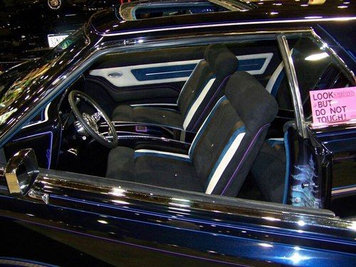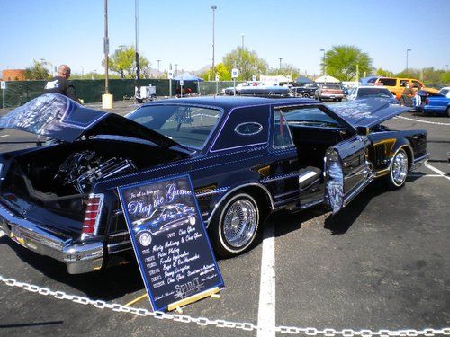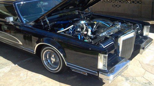 1979 lincoln mark v, one of a kind az rust free car garage kept. This vehicle is immaculate inside and out. Exterior is a custom black base with blue pearl paint accented with murals, silver leafing and pinstriping , chrome undercarriage, power moonroof, A/C , power windows, shaved doors. Chrome motor components can be found under the hood. Custom cut front bumper, French antenna. Interior consists of black and blue and white suede with accents of black leather. Also has a custom fiberglass dash and fiberglass console that runs from the dash through to the rear seats. Custom audio system includes flip down screen with DVD/CD player. Hydraulic setup includes two pumps and six batteries. This car is always a show winner, with many trophies and plaques. Runs and drives good, minimal yearly mileage as this is our weekend cruiser. Transport available, recently appraised at $37,000.00.. Call Chaz at Streetwerx, 480-829-9040.
