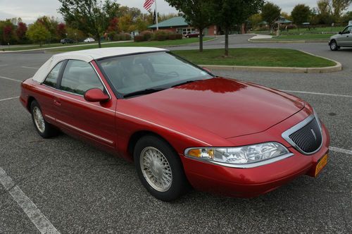 I am the second owner of the 1997 Mark VIII and priciple driver for the past ten years, I have a clear title dated from 2003. I knew the first owner. Well taken care of Headlights were updated from HID to Lincoln replacement headlight housings ($1200) that use standard halogen bulbs. The paint has some scratches and scuffs that you would expect to see on a 16 year old car. The ash tray door will not stay down, cup holders in perfect condition. There is a small dent near the drivers door that appeared when I came out of a store in Birmingham Al. The top has some discoloration from age, the top was replaced by me a few years ago by at a local shop. The air shocks have been replaced with coil springs. Upper and lower control arms have been replaced. The sound system is all factory as are the speakers. The original stereo was a cassette and I changed it with a factory single cd player. Never had the cd player in the trunk. Carpeting has some staining. Blend door actuator was replaced about two years ago and the climate control works as it should. I would judge the tires are about half worn. I have four addtional factory wheels (snowflake) with Firestone snow tires mounted and were used about two months that go with the car. It is always best to inspect a car before placing a bid. Any questions please ask before bidding.