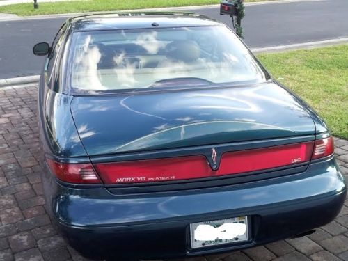 Happy New Year!!! <><><> NON SMOKER<> NO ACCIDENTS EVER!!! <> FLORIDA CAR<>< Oil Changed Every 3000 miles!!<><> ALWAYS GARAGED<>< up for auction is the last of the LINCOLN MUSCLE CARS... Enthusiast owned 1997 LINCOLN MARK VIII LSC With only 99K ORIGINAL MILES.. HID XENON lighting system in 100% perfect working order.. Has Goodyear Assurance tires which are all matching and have about 80% tread left on them.. Car has always been maintained and when not driven it lives in the garage.. Right when it hit 90k miles I had new brakes, rotors, and calipers replaced By Midas, still have copy of invoice.. Car steers nice and straight. Has JBL sound system with 10 disc CD changer mounted in the trunk.. The paint is like GLASS!! No OXIDATION WHATSOEVER Just a deep rich shine!!! And this is a 1 year only color... Yes do your homework people.. This was available only in 1997 for the Mark VIII... The interior is absolutely stunning. Very well taken care of. The interior is light prairie tan leather, as you can see from the pics the original LSC Floor mats are also in great shape.. The carpet, headliner, and the door panels all still look new. all the buttons work and all illuminate when the lights are turned on. The leather is soft, supple and in beautiful condition. NO ONE has ever smoked in this car, used the ashtray or cigarette lighter!! All the windows work, AC is Ice cold and the heat works too.. Rear Neon needs a new ballast, neon is fine.. BOTH DRIVER AND PASSENGER SEATS WORK 100% Which is a rarity.. very hard to find with both seats working.. The seat trim on both seats are both intact, they are not glued or broken.. Where else can you find a car like that this This car is garage kept.. you can eat off the underneath of this car,, no leaks of any fluids whatsoever... no check engine lights, no BS... Also it has been converted to coil suspension,, NO MORE AIR RIDE HEADACHES!!! Look up others on here... This is the one you want... YOU JUST CANT FIND THEM LIKE THIS ANYMORE!!!