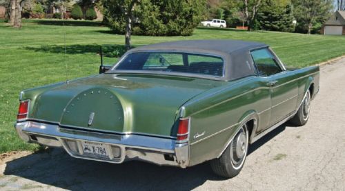 Classic 1970 Lincoln Continental Mark III Classic 1970 Lincoln Continental Mark III with 44,000 Original miles. Same owner for the first 43 years (1970 - 2013). Dark Green exterior with Black leather interior. New heater core; New brake master cylinder; New front brake calipers and brake pads. Everything works, A/C, power seats, tilt wheel, cruise, door locks, wipers, electric antenna, AM/FM original radio, all lights & horns, all switches and windows. The rear quarter window motors both run but windows do not move. The black leather interior is unbelievably new including the headliner. It is ridiculous how nicely this car starts, runs, drives and rides! Paint is average but original with the normal rusty spots in the lower corners. The under carriage is also rusty but with some wire brushing, rust conversion and undercoating should be good for decades to come. Exhaust is solid as far as I can tell, sounds great. The front short park brake cable and housing, and the intermediate cable need to be replaced and new ones are included in the sale. This is a great running, driving unmolested classic that needs attention to the paint and body that will then be an outstanding basically one owner car. Available to see anytime. Located in Lexington, KY. Please call David at 859-983-2500 for more information. |