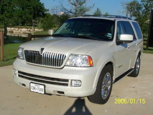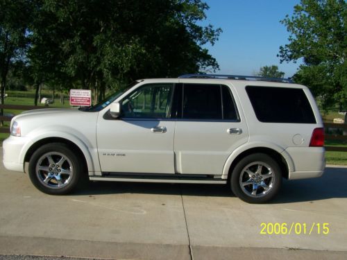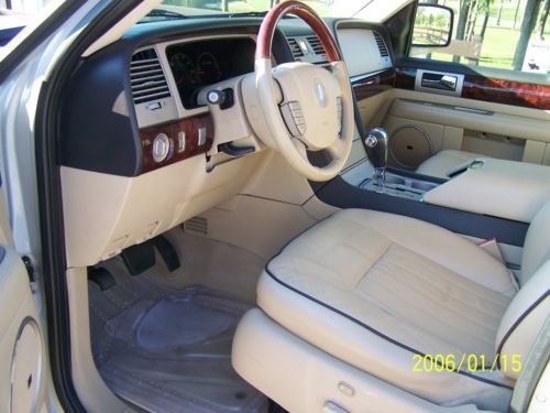 2006 LINCOLN NAVIGATOR - LIMITED EDITION ULTIMATE PACKAGE, PIPING ON SEATS, SUNROOF, TIRES HAVE 11K ON THEM, CHROME WHEELS, FACTORY KEY AND REMOTE, NON SMOKER, SUNROOF, PEARL WHITE PAINT. THIS IS A LIMITED EDITION THAT HAS ENTERTAINMENT PACKAGE, ELECTRIC REAR GATE, POWER RUNNING BOARDS AND POWER REAR SEATS THAT FOLD DOWN AND NAVIGATION. LEATHER IS IN EXCELLENT SHAPE AND SOFT. NO CRACKS.