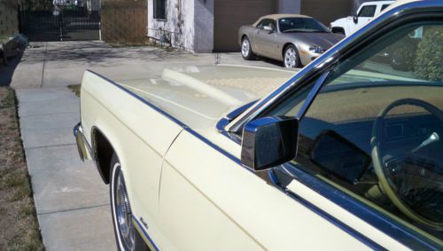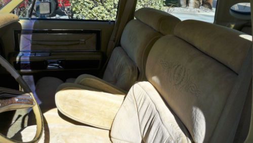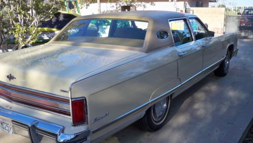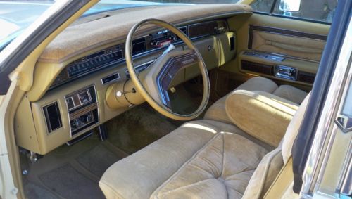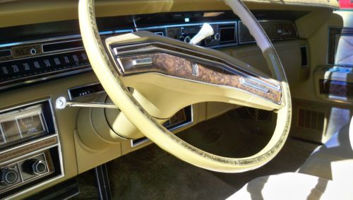 This is a '76 Lincoln Town Car Continental 4 door sedan. Car has JUST 34000 miles, ORIGINAL. Have most paperwork from registrations and repairs verifying mileage. Oil changed often, even though it sat most of the time. Beautiful canary yellow and matching interior. Seats are soft crush velour. Car is extremely clean for a 38 year old vehicle. BUT, it IS a 38 year old vehicle!. Wires etc look original, runs good but secondaries won't open, so since sitting for years, could use carb kit. Battery replaced, tires replaced, but sat so they seem to have flat spots. Cartier clock doesnt work, but rebuild job runs about 90$. Windows and locks work but all are slow and stiff, could use some lubrcation. I am third owner, getting it from son of original owner. Sold in New Mexico, now in sunny, DRY So Cal. Orig owner died about two years after buying, then his wife drove occassionally. When she passed, son, now about 80, got it. Did a few trips in early '80s, then parked it. It has the ULTRA rare spare fuel tank. I think it adds about 8-9 gallons to the 22-23 gal orig tank. This thing was MADE for LLOOONNNGGG hiway cruising, IN STLYE and comfort. Body nice, a few spots needing attention along edge of original leather, landou top trim and there are a few dings, hubcaps, trim, doors, some with not good touch ups, but all very small, chrome is peelin on shifter handle, and very small crack in drivers door armrest far front, un-noticable. Pix should answer most questions but feel free to ask. Interior nearly perfect, seats, headliner, carpet, dash. Trunk all original except needs one snap I think. Flip up lights work perfectly, no vaccum leaks. 8 trac tape player works and the "sympohony sound" is very good. Top is dry, very small cracking along seams, but VERY nice and presentable. Car is awesome at car shows, and I can NOT drive it ANYWHERE without getting comments. SEVERAL. It is like a time capsule. Going thru divorce and trying to get a house cuz of it. I would have NO INTENTION of selling it othertwise. Car is so nice to drive that it surprises you. With some lite TLC this car would be perfect. I just don't have time and it is a damn shame. Car is beautiful and fun. 1000.00 non refundable deposit upon winning, within 48 hours of purchase. Can't store long cuz of divorce, BUT could deliver it for fee, to include travel home. |