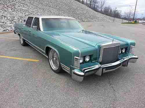 RARE LOW MILE SURVIVOR 1979 LINCOLN TOWNCAR This car is a true survivor. Bass Boat Silver Metalfake Roof Original Aqua Velour Pillow Back Interior 20" Chrome 100 Spoke Wire Wheels New Tires in Front 50% Tread on the Back The car is equipped with the factory 400 cubic inch new master cylinder, new fuel pump, new plugs wires cap and rotor. Ready to drive anywhere. I can't be 100% certian it has the correct miles but i have alot of the original service papers on it from the dealer and i believe the miles to be accurate. Please Read A/C doesn't blow cold, Right side windows dont work (they did when first got the car), Power Locks dont work correctly (i think they just need cleaned inside the door), Left Rear trim above taillight has minor damage (see pics). Headlight doors work but only when running. I have 100% positive feedback and i promise you wont be dissappointed with this car.