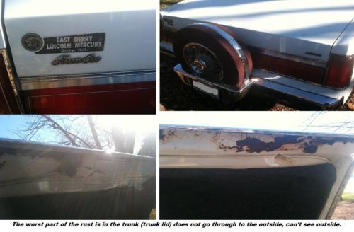 ******************************************* Hello, Up for auction is a 1985 Lincoln Towncar I bought this car in 2005 from the second owner, the car was originally from Mass. Up until two years ago I kept this in a garage, but it's been stored outside since then, and the weather has taken a toll on it. I have never driven this in the winter weather, but it has sat through it. With this being said, starting with what I know is wrong and/or needs fixed. Bad: Original paint, starting to fade. Passenger front door, clear coat came off in a spot. Vinyl Top good condition, except a couple of cracks starting and around back window it's starting to pull away from window. (It doesn't leak) Surface rust starting to show on rear quarters. Rust on inside trunk lid doesn't show on outside. Small/Slow oil leak under car. There may still be more things as you look over the car that I didn't find. This car is sold as is. No return.