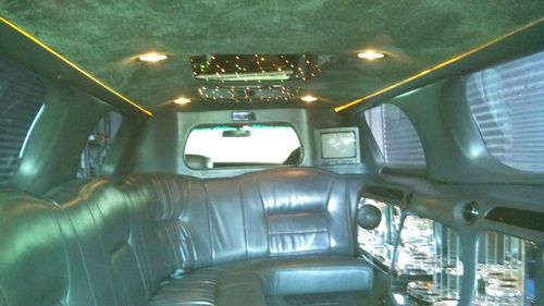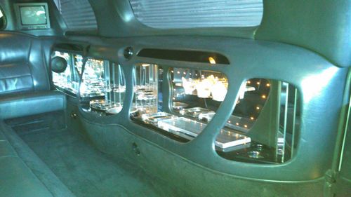 this limo has fiber optic lighting which changes colors,star gaizer mirrored ceiling ,tv,vcr, new stereo with aux. jack, bar with ice bins, solid divider. tires are in descent shape with good tread, exhaust is good.