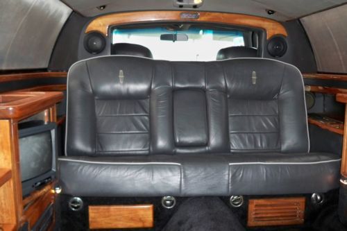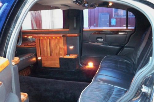 UP FOR BID IS A 1999 LINCOLN TOWN CAR 8 PASSENGER LIMOUSINE WITH LOW MILES IN GOOD CONDITION AS SEEN IN THE PHOTOS. THIS LINCOLN HAS A DECENT RUNNING 4.6L V-8 ENGINE BUT IT WILL NEED A TUNE UP TO RUN 100%. THE AUTOMATIC TRANSMISSION SHIFTS FINE WITH NO ISSUES. THIS IS AN 8 PASSENGER LIMO AND OPTIONS INCLUDE MOONROOF, GLASS PARTITION, FRONT AND REAR HEAT AND A/C, TV,VCR,REAR AUDIO SYSTEM, INTERCOM, MOOD LIGHTING, DRY BAR, TELEPHONE, LEATHER SEATING,PW,PL,PM,TILT,CRUISE, ALLOY RIMS AND 4 NEW TIRES. AIR SUSPENSION HAS BEEN CHANGED TO SOLID COIL SPRINGS. ONLY LIGHT ON DASH IS AIRBAG LIGHT.MOONROOF AND REAR RADIO ARE NOT WORKING MAY BE A FUSE NOT SURE. CAR HAS SOME MINOR SCRATCHES AND CLOTH TOP MAY NEED TO BE GLUED. THE FRONT AND REAR LEATHER INTERIOR IS IN NICE SHAPE WITH NO RIPS OR TEARS. A GREAT CAR TO MAKE SOME EXTRA MONEY WITH OR FOR PERSONAL USE. MILEAGE JUST TURNED 100,000. IF YOU HAVE ANY QUESTIONS OR WOULD LIKE TO SEE THE VEHICLE PLEASE SEND ME A MESSAGE WITH YOUR PHONE NUMBER AND I WILL GET BACK TO YOU. LOCAL PICK UP ONLY OR BUYER TO ARRANGE FOR TRANSPORT. A $500.00 NON REFUNDABLE DEPOSIT VIA PAYPAL IS DUE WITHIN 24 HOURS OF WINNING BID. CAR IS BEING SOLD AS IS WITH NO WARRANTY. THANKS FOR LOOKING