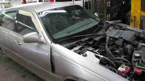 HIT IN FRONT-NEEDS NOSE-FRAME BENT IN FRONT, DRIVERS SIDE AIR BAG DEPLOYED, ALL WHEELS MISSING, BOTH TAIL LIGHTS HAVE CRACKS, BEAUTIFUL LEATHER INTERIOR-PRIVATELY OWED CAR-RAN PERFECT BEFORE ACCIDENT-ORIGINAL MILEAGE UNDER 42,000. FACTORY CD CASSETTE RADIO, ALL STANDARD LINCOLN OPTIONS, BUYER MUST ARRANGE SHIPPING, MUST GET SOME WHEELS AND TIRES TO MOVE CAR, 500.00 DUE WITH PAYPAL WITHIN 24 OF AUCTION END, BALANCE DUE WITHIN 7 DAYS WITH CERTIFIED CHECK