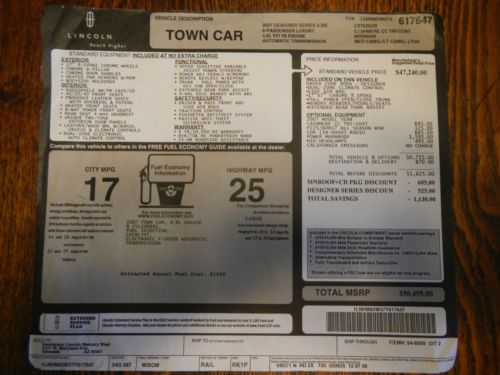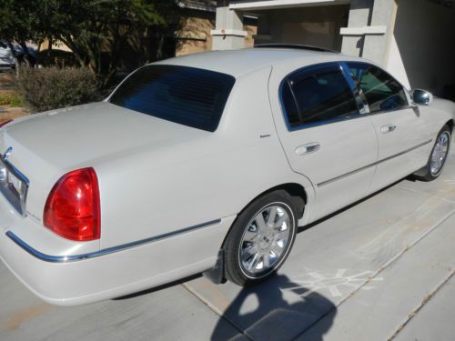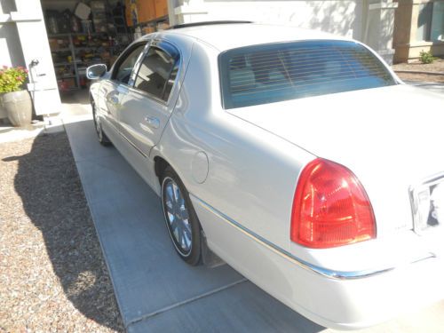 Offered is my originally purchased 2007 Lincoln Designer Town Car which is smoke and pet free. Options on car: Cashmere Paint, WSW Tires, 6 CD Radio, Power Moon Roof, HID Headlamps and California Emissions. Many standard items on this car including 17" chrome wheels, fog lights, upgraded leather, adjustable rear headrests, heated front seats, dual-zone auto climate control, adjustable brake/gas pedals, full power open/close trunk lid + many more. Car was never involved in any accident or had paint work done to it nor smoked in. The paint is 100% original except for a few very minor touch ups. This is a turn key car meaning there are no known problems. This car has NEVER been exposed to rock salt, snow or ice, therefore there is no rot. Interior and trunk lighting has been upgraded to white LEDs. This can revert back to factory style lighting easily. There is an external transmission FL1 oil filter installed to make sure the transmission fluid is clean. I used Mobil 1 engine oil from day one. When I changed/flushed the transmission fluid, I used Mobil 1 synthetic transmission fluid. I kept this car under a severe usage maintenance schedule due to some dust in my area. Most likely that was not required but I wanted to be sure. The air filter was changed every 10,000 miles--far earlier than the usual 30,000 miles. I have included my maintenance records to show what and when service was done. The great thing is that I did NOT purchase my car with a factory installed navigation system! Ford/ Lincoln no longer supports that system, meaning NO MAP UPDATES are available. Beware of these cars with the navigation systems as they only have old maps. If you have question about this car, ask me a question as I am the original owner. *****You can make arrangements and pay for a professional to inspect this car as I have nothing to hide. Since I did some road trips, I installed a full size spare tire--it's on a non chrome Town Car wheel. The factory donut spare tire is also present and all tires are filled with nitrogen. Interior windows were tinted and rear windows had vent covers on them--easy to remove if you don't like them. No personal items that are visible in photos are included. I can store car at my location for a few weeks if paid in full. For out of State purchaser, arrangements can be made for your pick up at the SkyHarbor, Phoenix AZ Airport. You must have a PayPal account to bid on this vehicle. Just added two photos of a new replacement driver's lower seat cushion cover that will become part of this offer. Back in 2007 I ordered a new seat cover as the driver's seat bottom usually receives the most wear. Right now it doesn't pay to replace it, but in the future it might be required. The value of this cover was $250 in 2007 and is no longer available. Due to a question asked about the paint being shiny, I added the last four photos. There is no damage to the car as the photos were taken to show reflections in the shiny paint. There are two ways to answer that question, #1 with added photos and my description with photos or #2 hire a professional to inspect the car. I've been an eBay seller for over ten years with a 100% feedback rating. A 2007 Designer Town Car being sold by the only/original owner with posted maintenance records is hard to find. 2007 Lincoln Town Car 1LNHM83W37Y617647 ******* DECEMBER 05, 2013 01/15/2007 Inspected @ Dealer with 04 miles, test driven to 08 miles, purchased OIL CHANGES 01/25/2007 Mileage 000,181 Mobil 1 5W20 six qts. & Oil Filter Fram TG2 @98% 06/22/2007 Mileage 004,440 Mobil 1 5W20 six qts. & Oil Filter Fram TG2 @05% 12/17/2007 Mileage 007,689 Mobil 1 5W20 six qts. & Oil Filter Fram TG2 @ 05% 06/04/2008 Mileage 012,280 Mobil 1 5W20 six qts. & Oil Filter Motorcraft FL820s @ 2% 11/21/2008 Mileage 016,918 Mobil 1 5W20 six qts. & Oil Filter Motorcraft FL820s @ 3% 05/06/2009 Mileage 021,399 Mobil 1 5W20 six qts. & Oil Filter Motorcraft FL820s @ 5% 10/28/2009 Mileage 025,841 Mobil 1 5W20 six qts. & Oil Filter Motorcraft FL820s @ 0% 04/14/2010 Mileage 030,612 Mobil 1 5W20 six qts. & Oil Filter Motorcraft FL820s @ 4% 10/05/2010 Mileage 034,276 Mobil 1 5W20 six qts. & Oil Filter Motorcraft FL820s @ 1% 03/07/2011 Mileage 039,405 Mobil 1 5W20 six qts. & Oil Filter Motorcraft FL820s @1% & Magnafilter # 3702215 installed 08/08/2011 Mileage 044,438 Mobil 1 5W20 six qts. & Oil Filter Motorcraft FL820s @1% 09/20/2011 Mileage 049,439 Mobil 1 5W20 six qts. & Oil Filter Motorcraft FL820s @1% 03/23/2012 Mileage 053,560 Mobil 1 5W20 six qts. & Oil Filter Motorcraft FL820s @0% 07/19/2012 Mileage 058,566 Mobil 1 5W20 six qts. & Oil Filter Motorcraft FL820s @0% 01/16/2013 Mileage 062,186 Mobil 1 5W20 six qts. & Oil Filter WIX 57386 @0% 06/25/2013 Mileage 065,255 Mobil 1 5W20 six qts & Oil Filter WIX 57386 @ 9% 12/05/2013 Mileage 070,243 Mobil 1 5W20 six qts & Oil Filter WIX 57386 @2% Air Filter 04/11/2008 Mileage 010,539 Fram TGA5056 05/06/2009 Mileage 021,399 Fram CA5056 06/07/2010 Mileage 031,380 Fram CA5056 03/20/2011 Mileage 040,119 Fram CA5056 09/20/2011 Mileage 049,439 Fram CA5056 09/01/2012 Mileage 060,019 Fram CA5056 12/05/2013 Mileage 070,243 Fram CA5056 Nitrogen 05/01/2007 Mileage 003,050 air removed from all tires. Nitrogen installed by Nitrogen Man, Inc. Tires 09/30/2011 Mileage 049,620 Replaced all factory tires with four Michelin® Energy® LX4® P225/60R17 purchased at Costco + nitrogen filled. . Factory tires were worn evenly and due for replacement at 50K miles. $720 Battery: Removed factory 650 CCA @ 8575 miles January 2008 to place in 1970 Mark III Replaced with Costco 1000 CCA battery Replaced 04/21/2010 @ 031,012 Miles Kirkland 65/900 (#4) 1000CA/850CCA Replaced 05/15/2012 @ 054741 Miles with Kirkland 517959 65-657 due to age/heat Flushed Brake System 02/02/2009 Mileage 017,974 Flushed with DOT 3 1.5 Qts. Note: Front tires must be removed. 10/28/2010 Mileage 035,765 Flushed with DOT 3 1.6 Qts. 02/27/2013 Mileage 062,837 Flushed with DOT 3 1.8 Qt.s--might hav