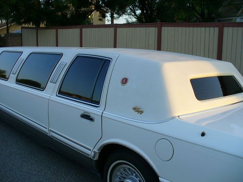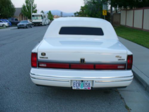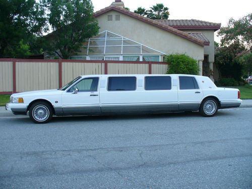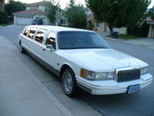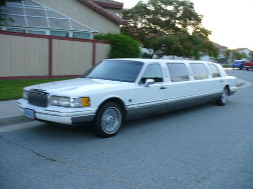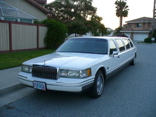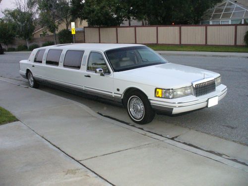 WOW, Prisrine Condition 1994 Lincoln Town Car (St. Tropez) 8 Passenger Limousine. Owned by Private Collector with only 31,000 Original Miles.Runs and Drives Like New. Original American Custom Coachworks in Beverly Hills, Calif. Over $6000.00 spent last year in Stereo, Speaker, Navigation, TV's, and Electronic Upgrades. Not a Dent Ding or Scratch on this Limo. Front and Rear A/C, Custom Slide Out Stereo and Navigation, Alpine Cd Player with Custom Speakers, Rear Moonroof, Play Station Plug In's, Privacy Glass, Dual Rear TV's, all Glasses and Ice Trays, and Front and Rear Phones. 4 New Tires and Rims are Perfect. White Vinyl Top is Perfect. BUY it NOW or MAKE an OFFER. Great addition for any Collector. Please feel free to call Keith at 626-253-1946 for any additional information on this Town Car. We are a Licensed and Bonded Dealer in Southern California and all California Residents will pay State Sales Tax, License Fees and a $125.00 Docmentation and Smog Fee. Thanks and Happy Motoring.