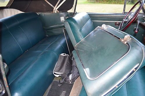 Car has both skirts trim rings, hub caps and hinge mounted rear view mirrors along with the RARE rear seat flip up wind deflectors !