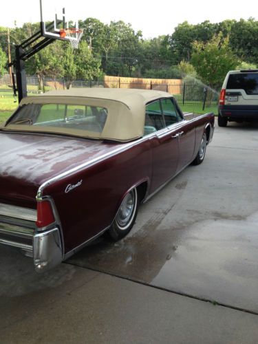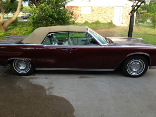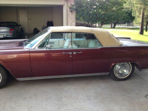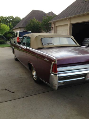 This is a rare 1964 Lincoln Continental Convertible with bucket seats. The car runs and drives. I just spent 2500 dollars on carb rebuild and new brakes and a couple of other items. Please view all pictures and ask questions on anything and everything. The cars needs much work but for a few grand more you could have a decent very cool driver. The pictures make the car look better than it is to be honest. The panels are pretty darn straight but it will need a full paint job if you wish to have a shiny vehicle. There is a rust bubble on the right rear fender well. The rest of the body is fairly clean minus a ding or two. The bumpers have some rust as shown. The convertible top does not work. The motor turns and spins but does not engage the clamps above the windshield. The top is in very nice shape minus the rear window trim area which is coming apart but should not leak. The front power windows work including the quarter windows, the other windows do not. There are missing parts on the interior as shown in photos. Windows don't line up exact just based on the rear windows not working. The tail lights are not working or brake lights. I am sure this is an easy fix but cannot access since the trunk will not go up based on previous top comment. As mentioned it is a rare set up but this would be a better weekend cruiser than a full restoration vehicle as the cost would be astronomical. Items to address would be top, windows, lights then you could tinker and adjust thereafter. I have a box of little items such as the ashtray etc...There are alot of things that need tightening etc...so I hopefully think you get the picture.