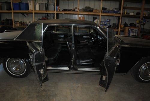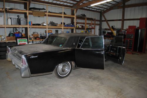 1965 Lincoln Continental. Been in a Warehouse for several years. Not currently running, although everything in there. Does not look to leak. Black on Black original with suicide doors. Has some small rust spots on trunk lid and some rust on bottom of rear bumper. A very solid car. Call me with any questions. Josh 870-243-3993