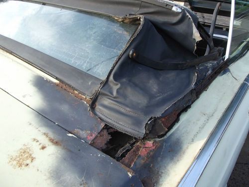 This 1966 Lincoln Continental Convertible has been stored under a tarp for the better part of 20 years, the title is lost, repeat, the title is lost, there is no title, we had it and it's lost. This is a parts car, or if you can get a title in your state that is entirely up to you. We had bought this car for a friend and he let it sit. We started the engine, the engine runs well, no valve taps, started right up, ran off of a gas bottle. The grille and headlights are missing, we have most of the top parts, what you see is what you get, repeat, what you see is what you get.