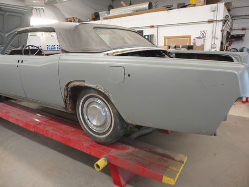 1966 Lincoln Convertible Project. Restoration started but needs to be finished. Interior is done and there are pics of it. Still needs to have top redone. Upholstery bill $9,672.13. Car was a good running driving car before restoration started. Body was stripped and soda blasted then epoxy primed.Bill to disassemble, strip paint, soda blast and epoxy prime $5,000.00. Includes back half of parts car. Parts car is solid and rust free. All parts are in labeled bags and tagged. Lots of extra parts and new parts. It comes with all of its original paper work, service tag, etc. Look through the pics. Ask questions before you bid. Winning bidder will need large trailer for the car, parts car and all of the parts. Will help with loading. We are listing this for a customer. Call 1-802-863-3555 and ask for Scott. I can answer any of your questions and e-mail you more pics. Thanks.