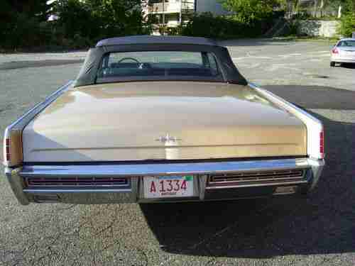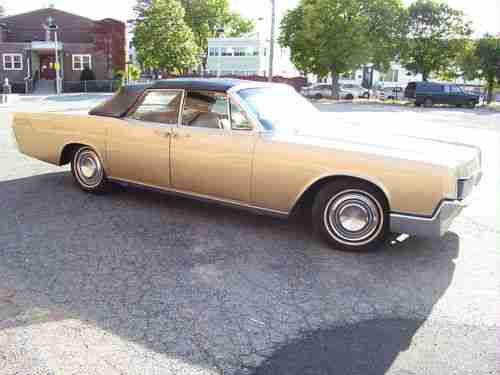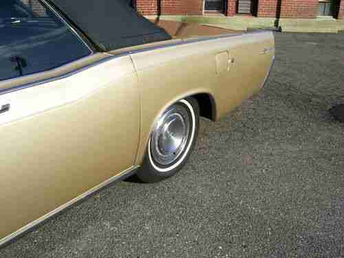 Here we have a 1967 Lincoln Continental Convertible up for sale. I have owned this car for about the last 20 years. The original mileage on the car is 59,500 miles. The car has been restored to quite some detail although it was not needed in the least bit. Bought it strictly as an investment back in the day, did work here and there over time to an already beautiful car. Exterior color was changed to Desert Gold and the Leather Interior was re-done to Hunter Green. Car runs beautifully from start up, idles fine, to cruises around perfectly. The car was sent to Lincoln-Ranch in Florida to have the finishing touches done on it this past Christmas. Light body work to make the exterior pristine, power/electrical work done to windows and doors, tune-up on the engine, etc that needed to make this car 100 percent ready to be done and sold. Like I stated I have owned this car since the 90's and it was meticulously pampered. It was hardly ever driven with the exception of warm weather weekends and Columbus Day parades every year. Living in Boston, the winters are harsh with the temperature and snow, the car was always stored properly. If you have any questions regarding the car, please don't hesitate. If you would like to contact me via my cell send me an email asking and I will respond with my number. My name is Carl, hope to hear from you.