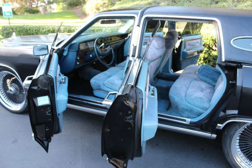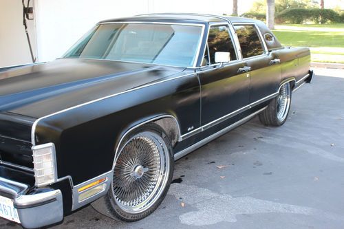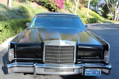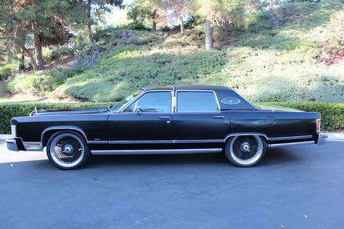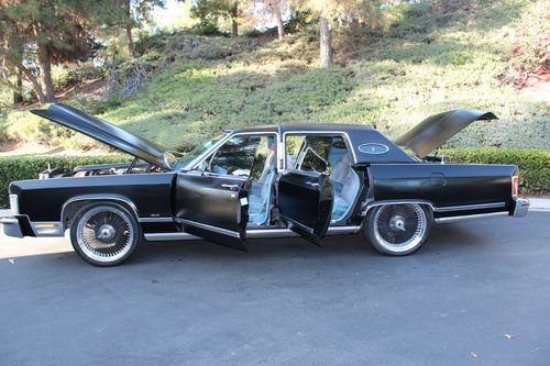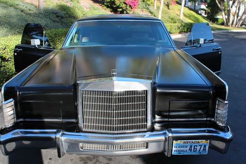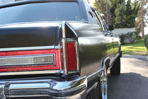 this 1979 Lincoln Town Car with 137,000 Custom originally was light blue .but,...custom treatments are blacked out windows with satin black exterior finish,..
