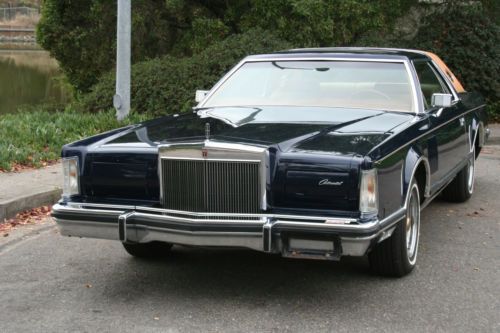 This Bill Blass Edition Mark V is finished in Midnight Blue Metallic contrasting with the landau vinyl roof in chamois color and pigskin texture. Chamois was also chosen for the interior of leather and vinyl. The pigskin texture is utilized on the seating surfaces, straps and door panel inserts. The Bill Blass identification is in the opera windows. The Lincoln is powered by a 400-cid, 179-hp V-8 engine connected to a three-speed automatic transmission. This Bill Blass Edition 3 owner car purchased in 1977 from SF Lincoln Mercury on Van Ness Ave. Sold in 1979 to 2nd Owner in San Jose, CA and then purchased by last owner in 81. Same Owner from 81 to current year, always garaged. Complete Service records since purchase including all registration tags for every year. Including original owner registration/Inspection tag from SF Lincoln Mercury in 1977. Well documented car with a few minor flaws, only 40,440 Original miles showing on the odometer, original paint, Zenith Wire wheels, this Continental even retains the original space saver spare as well as the aerosol bottle to fill it. Everything works including the Clock!! A/C, P/S, P/B, P/W, Power sunroof, Heated Drivers side Mirror, Original 8 Track player. The 1977-79 Lincoln Mark V is decidedly old-school. Truly the last 1979 passenger car 80 inches wide and 230 inches long with fuel economy barely in the double digits, and with a design putting styling over aerodynamics….the Mark V embodies what traditional “Amercian luxury cars” were known for since the dawn of the automobile. A handsome car in its day, the V’s elegant and crisp lines have stood the test of time well making it a period piece that still turns heads today. Produced for only three model years, many collectors consider it as recognizable an icon today as a 1955-57 Ford Thunderbird, a 1964-66 Mustang, a 1968-70 Dodge Charger (Dukes of Hazzard), or even a 1995-97 Ferrari F50…all vehicles with three-year model runs also. That said, it’s fair to say the Mark V is more an evolutionary design than a revolutionary one. Improving on its predecessor (the 1972-76 Mark IV), the ’77 used the same 120-inch wheelbase as well as same front/rear tread width. While 2.2 inches were added to the overall length for styling, engineers diligently brought curb weight down from 5,000 pounds to 4,600 pounds. Sheetmetal, grille, and bumpers were all new for ’77 and embodied a sharp-edged more angular theme rather than the more rounded and heavier-looking styling of the Mark IV. Three vent slats along both front fenders were new, and served to improve interior ventilation. Evolutionary styling carried over the previous Mark IV’s narrow Rolls grille, vertical “blade” style parking/turn signal lights in front fender extensions, simultated spare tire hump in trunk, concealed headlamps, and opera windows in roof c-pillars. In a 2003 interview, Ford Motor Company designer Don DeLaRossa reflected in Collectible Automobile Magazine back to the Mark Vs development in the 1970s. “The starting point for the Mark V was an alternate design proposal for the Mark IV that had been championed by Gene Bordinat, corporate styling vice president. Bordinat didn’t like the Mark IV design he approved for production. We extended those lines of the Mark IV, straightened them, and kept them flowing….Gale Halderman (head of Lincoln-Mercury design studio at the time) said taillamp blades that wrapped over into the rear fender tops were considered until they proved unpopular in market research.”. 1977 MODELS INTRODUCED October 1, 1976. Base price: $11,396 (80,321 sold). To view a commercial from Autumn 1976 introducing the Mark V at the New York Museum of Modern Art, see http://www.youtube.com/watch?v=daN4tYCssSI. Note the vehicle shown in this “modern art” theme has no vinyl roof. The narrator was actor John Houseman. $2000.00 NON REFUNDABLE DEPOSIT IS DUE WITHIN 48 HOURS AT THE END OF AUCTION. THE CAR IS ALSO BEING SOLD LOCALLY AND SELLER HAS THE RIGHT TO END AUCTION AT ANT TIME. BUYER IS RESPONSIBLE FOR TRANSPORTATION AND PICK UP. |