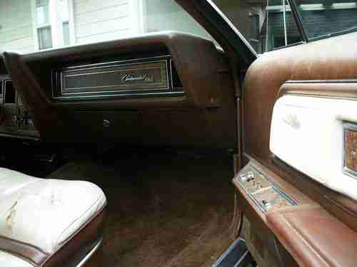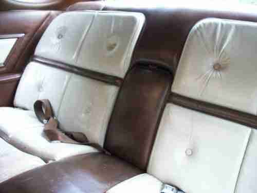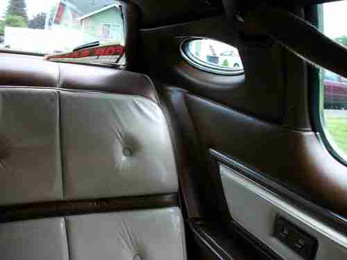 Vinyl roof in great condition. Beautiful Dark brown metallic exterior with "Saddle and White Luxury Group" interior. Bottoms of front seats need new upholstery, but rest of leather is in good condition and is high luxury white with brown accent, plush seating.