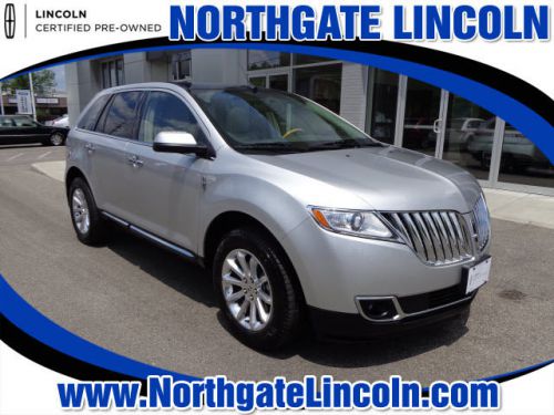 LINCOLN CERTIFIED, 1.9% APR UP TO 66 MO. W.A.C. Panoramic Vista Roof, Voice Activated Navigation, Adaptive HID Headlamps, Ambient Interior Lighting, Heated 2nd Row Outboard Seating Surfaces, Heated front seats, Heated Steering Wheel, Memory seat, One Owner Clean Carfax, Premium Package, Radio: Premium AM/FM Stereo/CD/MP3, Rain Sensing Wipers, Rear-View Camera, SIRIUS Satellite Radio, SIRIUS Travel Link, Ventilated front seats. Imagine yourself behind the wheel of this good-looking 2011 Lincoln MKX. Lincoln Certified means you get meticulous 200-Point inspection by factory trained technicians, the confidence of a 6-year/100,000-mile comprehensive warranty coverage and complimentary 24/7 Roadside Assistance. Additional features include the assurance of a vehicle history report. Luxurious by standards, Certified by Ours. This SUV only has 29k miles, meaning there's tons of room left on the odometer. This Lincoln MKX is nicely equipped with features such as Wood Package, Adaptive HID Headlamps, Ambient Interior Lighting, Heated 2nd Row Outboard Seating Surfaces, Heated front seats, Heated Steering Wheel, Memory seat, One Owner Clean Carfax, Panoramic Vista Roof, Premium Package, Radio: Premium AM/FM Stereo/CD/MP3, Rain Sensing Wipers, Rear-View Camera, SIRIUS Satellite Radio, SIRIUS Travel Link, Ventilated front seats, Voice Activated Navigation, 10 Speakers, 3.16 Axle Ratio, 4-Wheel Disc Brakes, ABS brakes, Air Conditioning, Alloy wheels, Auto-dimming door mirrors, Auto-dimming Rear-View mirror, Automatic temperature control, Brake assist, Bumpers: body-color, CD player, Delay-off headlights, Driver door bin, Driver vanity mirror, Dual front impact airbags, Dual front side impact airbags, Electronic Stability Control, Four wheel independent suspension, Front anti-roll bar, Front Bucket Seats, Front dual zone A/C, Front fog lights, Front reading lights, Fully automatic headlights, Garage door transmitter: HomeLink, Heated door mirrors, Illuminated entry, Low tire pres