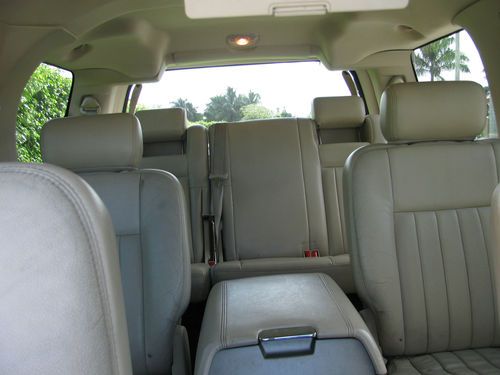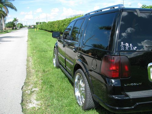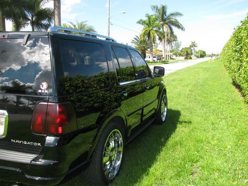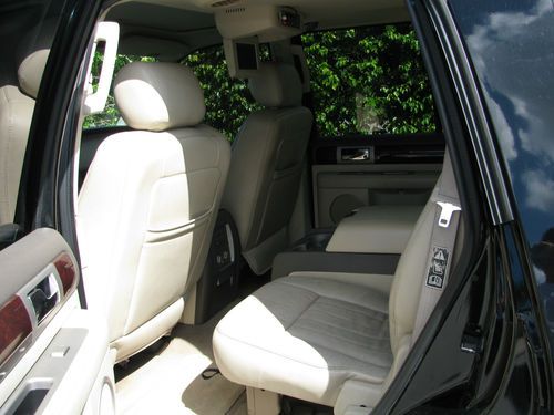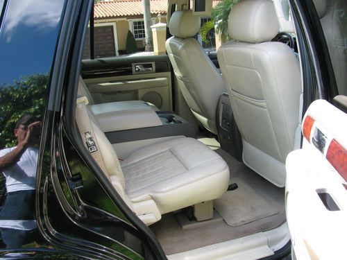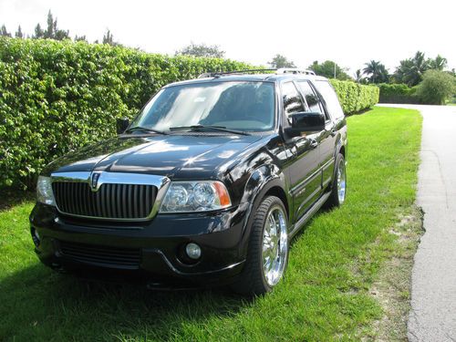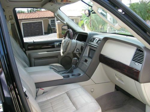 2004 Lincoln navigator awd 4x4 black exterior with tan leather interior only 15,558 miles on the engine since a complete overhaul done by reputable shop all paperwork to prove it, air suspenssion shocks have been replace by regular shocks rest of the system is intact can be reverse at any time only 1,200 dollars for a complete air suspension system here on ebay for maximum ride , this is a florida vehicle no accident no rust and no leaks of any kind is a clean fL tittle it is a awd with traction stability control and brake assist best in its class , power side steps power folding mirrors , power 3rd row seats, dual climate control air conditioning and seats front and rear A/C blowing ice cold, restrains airbags everywhere the only vehicle with 8 star rating in rollover best in its class and any class , 24 ich rims, tires have 80% left on them the rims are used 3 years old, also have original rims and tires in very good shape, the interior is in very good condition except for the driver seat is a little worn out and has a small cut but the rest is very good, it has all the extras a navigator has except for a factory gps i had an aftermarket system installed but I also have the original radio, vehicle overall shape is very good ( note) the Engine was completely overhaul because I wanted it that way and not because it needed it it had 134k when I bought it from a friend I was told that around 150k that it will need timing chain replacement so I decided to do the whole thing, also replace the front hub bearings and upper control arms which are known to wear , everything else is in good working condition, thank you very much for looking and very happy bidding any questions feel free to ask.