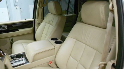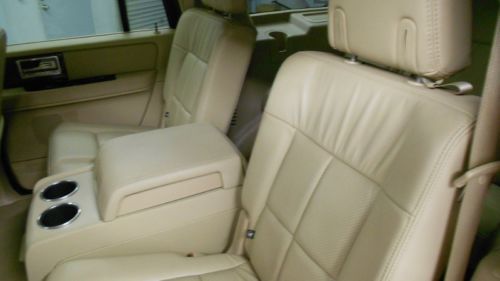 This Light French Silk Metallic exterior paint is very nice with an impeccable beige interior. The engine on this truck is very strong, the transmission shifts very smooth, and all power options work too. This truck is just getting broken-in and it's absolutely gorgeous. Ride above the rest, and make room for the whole family. This great SUV has it all its fully, fully loaded: Ultimate/Elite package, GPS-Navigation System, Power Retractable Running Boards, Leather Seats, Heated/AC Seats, Power folding third row seats, Power lift gate, Entertainment System TV/DVD, CD Player, DVD Player, Two headrest DVD Players on front seats (3 Total DVDs), a 400 Watt power converter for 110 Volt power outlet for Xbox, PS3, or WII; 3 rows of luxurious leather seating, Power seats; Power sliding Sunroof, Full wood package, Front & Rear A/C, premium Lincoln 20 inch chrome wheels, Roof rack, power windows, power mirrors, power fold mirrors, power door locks, cruise, tilt, fog lights, xenon headlights, keyless entry, and much much more! This is a very nice pre-owned