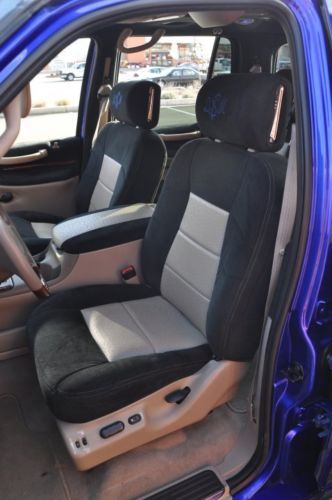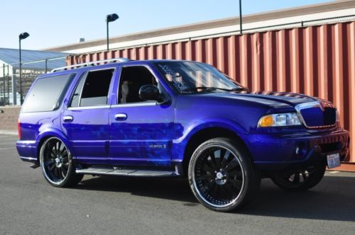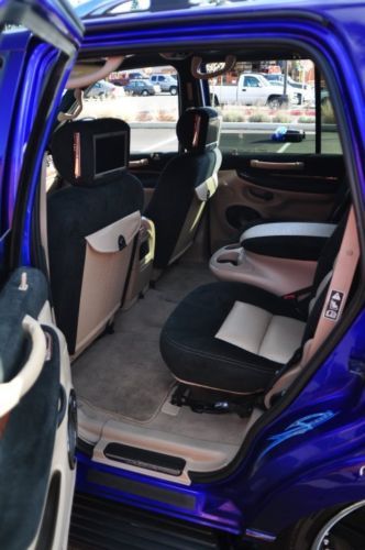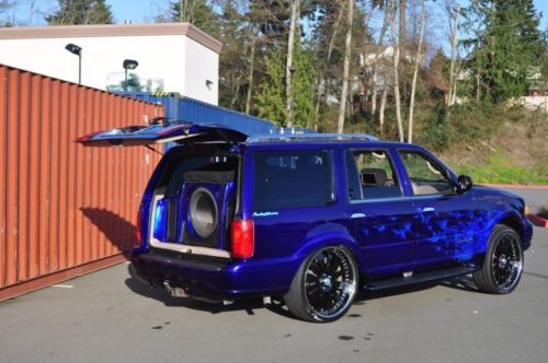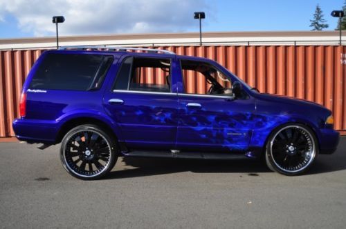 The car has over 125k, invested into the rims, paint, stereo, suspension, and interior. I have pretty much all of the receipts for all of this stuff as well. The car has and does win Best SUV at every show it's been too as well as numerous Best Paint, Interior, and Wheels This has to be one of the cleanest, clearest and loudest sounding stereo systems I have ever heard. I get tons of compliments on it all the time. The paint job was finished at the end of 2009. In the last 2.5 years I have put on less than 4000 miles. It is only driven to car shows for the most part but can be used as a daily driver if needed or wanted. The car has no problems at all and has been a blast to have. I had new brakes, belts, oil, and tune up professionally performed in 2009. Regular oil changes and maintenance have been performed as well since. The car has a total of 56,000 original miles. This is extremely well maintained low miles SUV and amazing, fun car to drive. Modifications Interior All Suede headliner All Suede A pillars All Suede B pillars All Suede C pillars Front door handles wrapped in Ostrich Back door handles wrapped in Ostrich Suede and Ostrich Double stitched Front seats Suede and Ostrich Double stitched Back seats Custom made rear center console wrapped in suede and Ostrich, hidden ps2 and cup holders Custom wrapped suede and ostrich Front center console Custom plush carpet kit Chrome Lincoln door seals Custom made fiberglass door panels wrapped in leather, suede, ostrich, wood grain, tinted plexiglass, and double stitched Custom made ostrich pockets behind front seats Custom fitted Blue tooth controller in center console wrapped in suede Custom made and fitted chrome airride switches Upgraded heated wood steering wheel Heated and cooled front seats Varad Blue led lights throughout SUV Custom stitched headrests Complete car has dynamat installed throughout. Radar detector custom built into dash with scramblers in front and rear bumper. The Interior alone cost over $15,000 i have all of the receiptsICEPioneer Avic Double Din w/ real traffic time navigation, xm upgrade, Bluetooth Back up camera/rear view camera Ipod Hookup 1 MTX 22" JACKHAMMER Subwoofer 2 6.5" sun visor wide screens custom wrapped 2 9" headrest wide screens with built in DVD players 2 9.5" wide screens in rear headrests 1 32" Plasma screen custom made fiberglass bezel wrapped in suede w/ 2 part automated actuator 2 10" wide screens in the amp racks 4 MTX Midrange amplifiers 4 MTX Subwoofer amplifiers 2 Focal 6" three way components sets in front doors 1 Focal 3x7 three way set in rear doors 1 Focal 3x7 three way set in rear amp racks 2 15 farad capacitors O awg wiring throughout car 4 Blue top Optima batteries in custom under car bracket for system and airride PS2 with wireless controllers 3 video amplifiers 4 wireless headphone sets DEI 2 way pager alarm,car startup 2 battery isolators 4 Stinger distribution blocks Custom made subwoofer housing made of steel bolted and welded to cars sub frame to house the 22"" subwoofer Custom made motorized 2 way amp racks made of fiberglass All fiberglass was painted With House of Kolor Kandy Cobalt blue with a silver base coat and chrome flake added to the kandy 4 led bar changing color underglow kit Pager Alarm System The system alone cost over $60,000 i have all of the receiptsEngine K&N intake Custom made alternator bracket 3 Custom made 200 amp alternators Blue top Optima battery Engine parts are completely custom painted Kandy and Kandy marble for a show quality engine bay Wheels & Suspension 26" Asanti FS three piece Pirelli Scorpions Full wireless air ride suspension Steel braided lines Chrome 8 gallon tank 2 Chrome compressors All chrome a/n fittings Exterior All paint performed by Phantasy Kolors 5 Coats of House of Kolor Orion Silver 2 coats of House of Kolor Kandy Cobalt blue with mini silver flake 6 coats of House of Kolor Kandy Cobalt blue 5 coats of House of Kolor Top coat Clear The bottom parts of the front and back bumpers, both runing boards have: Blue overlay and 4 coats of House of Kolor Clear Custom free hand airbrushed true fire on both sides of the car where sprayed with: House of Kolor Kandy Oriental Blue and House of Kolor Kandy Burple All airbrushing toped off with House of Kolors Kandy Cobalt Blue Custom pinstriping on rear passanger door jams silverleafed and pinstripped, hood, rear hatch and on rear quarters The Paint job alone cost over $25,000 i have all of the receipts |