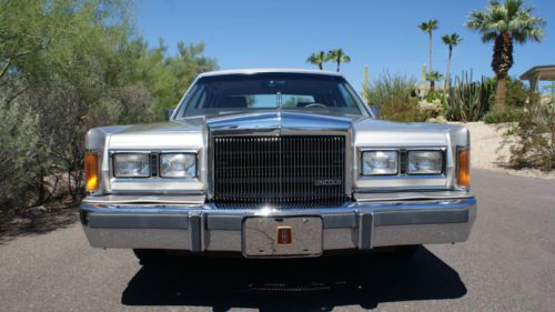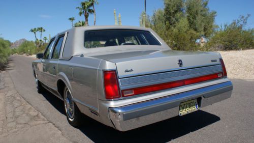 Only 70,468 Carfax certified miles. Drives like a dream! Factory options include - comfort/convenience package, dual 6 way power front seats, headlamp convenience group, automatic headlamp On/Off, auto headlamp dimming, dual illuminated visor vanity mirrors, power decklid pull-down, Front and Rear floor mats, leather interior with leather wrapped steering wheel, body side-mouldings, accent pin-striping and locking wire wheel covers with whitewall tires. This car is like new inside and out, a collectors item. It's amazing! Equipped with most available Lincoln luxury equipment. Everything is Lincoln original. PHOENIX, ARIZONA, RUST FREE CAR 1989 Town Car. Never any accidents and never smoked inside. Light titanium metallic trimmed with a matching silver padded "Luxury Coach Valino" quarter roof and complemented with a silver leather interior. Extremely well maintained and serviced, including a full, no conversions. Only serviced by Ford at Bell Ford, Phoenix, Arizona, by Service Agent Mike P. (602)-564-3114. He would gladly discuss the excellent condition of this vehicle. Last year of the first-generation Town Car. The 1989 models are distinguished by special trim features including satin black paint for grille blades, trim between headlights, and amber (instead of clear) front parking lamps. The "Lincoln" front-end badging is moved from above left headlight onto grille and changed to large sans-serif script. In the rear, the brushed-metal panel was given a pinstripe finish and all badging was moved from the panel onto the trunk lid. All models feature a landau roof with a smaller, more formal "frenched" rear window. |