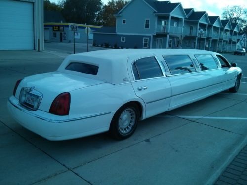 1998 Lincoln Town Car SuperStretch Limousine for sale. Liquidating assets from a Limo/Party Bus company. Has the newer body style of the lincoln town cars. Cloth roof is still in excellent condition. Tires have 50-75% tread left on them. Recent upgrades include new shocks/suspension, new tail pipes, new gear shaft, new battery, new cd player and speakers, and detailing of inside and cloth top. List Price was $37,900 brand new.
