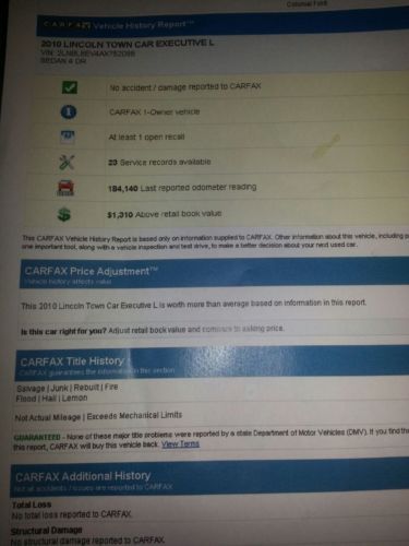 2010 Lincoln Town Car Executive L BLACK/BLACK, 184k miles, excellent