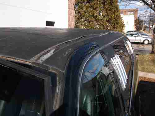 ON THE ROOF: Buy 3 m molding glue -Simply first glue down the open seams on the roof.Once gluesd down there are 2 options: 1. buy a 4x8 sheet of sheet metal.cut it into a 2/12 width..72 long. That should cover egnth of the roof. .go to a fabric store and buy some black vinyl.cover the 2 2 1/2 strips with the vinyl..Then glue it over the seam.Coulsd screw in as well Then clean roof.Personally I would paint it with black outdoor paint.Thats it-YOU CAN ALSO SIMPLY GLUE and glue DOWN THE OPEN SEAM AND THEN CLEAN AND PUT A 1 OR 2 MOLDING ON TOP..THEN CLEAN IT.IF YOU DO THE MODLING GET A HEAT GUN AND HEAT THE GLUE BEFORE APPLYING THE MODING