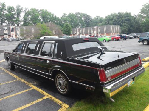 What I Have Here For Sale Is a Beautiful Looking and Beautiful Driving and Riding 1989 Lincoln Town Car Limousine.The Exterior is Black with Red Pin Striping and Chrome Trim,This Car Is Perfect For a Private Owner or Makes a Great Business Model..Lincoln is Known For Superb Luxury and This Beautiful Limousine is No Exception.The 57000 Miles on This Car Are Original and This Car Has Been Well Maintained and Babied Having all Mechanical Receipts To Prove so.Whoever The Lucky Buyer Of This Limousine Is Getting Everything they Pay For In Beauty and Luxury,This Car Is Really a Must and a See Must Have Vehicle.