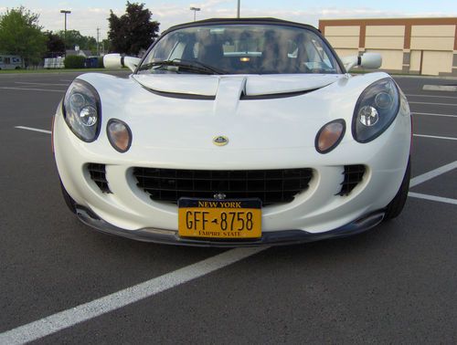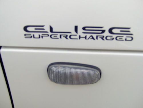 2009 Lotus Elise Factory Super Charged, Aspen White, Black Interior. Oil and filter just changed, Transmission just changed, Sector 111 tow hooks and lid bone. Extra set of New Porterfield R4S brake pads ($170.00) for front and back. Side vent covers w/ mesh and brackets being delivered this week ($785.00) along with extra gas fill cap ($55.00). Two, one piece key&FOB, one spare key-no FOB and one blank key, owners manual, tire change tool kit. Sport insert engine mounts. Engine and exhaust are stock.