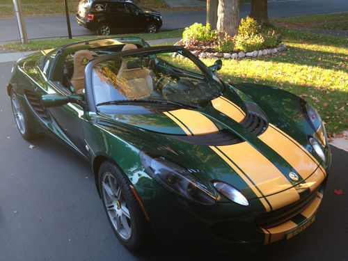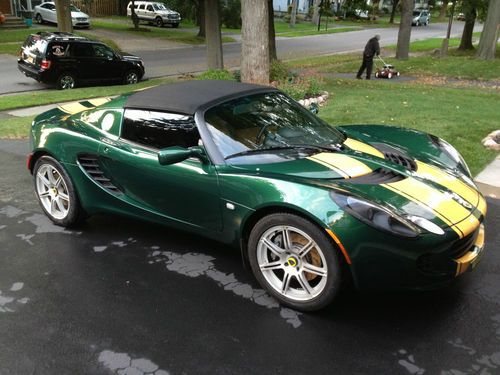 Excellent looking/running/driving 2005 Lotus Elise- sport & touring package & stage 2 exhaust. British racing green with Lotus yellow vinyl stripes. Tan leather interior with embroidered Lotus logo headrests. Clean title in hand, owners manual and car audio manual included. Soft top only. Sector 111 trunk insert. New tires all around, new upgraded front brakes, new front right oil cooler and lines, all service records included. New small front grill inserts. Never tracked. This car comes with no warranty.