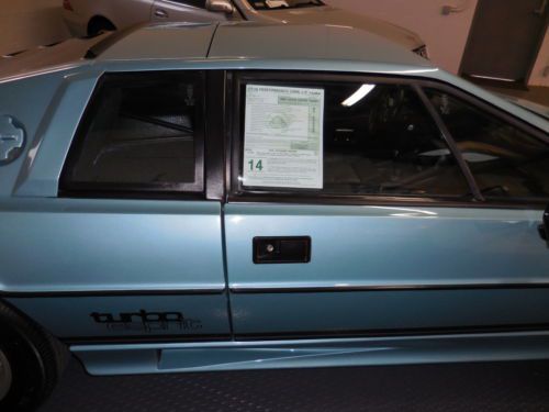 1983 Lotus Turbo Esprit S2.2 Guigiaro Series Fancy Cat Sports Cars LLC, are very pleased to offer for sale a beautiful all # matching, all original European Sports Car, the iconic Lotus Turbo Esprit Having shot to fame after featuring in the James Bond Film " The Spy Who Loved Me ", it became and instant success, and proportionally it was perfect. Italdesign's Chief Stylist, Giorgetto Giugiaro, created the exotic cutting -edge beauty which Fancy Cat Sports Cars LLC, are offering for sale here. Our Lotus is wrapped in Ice Metallic Blue paint which was one of the more eye catching colors of the period, and is absolutely stunning in it's Mint Condition. The Original Blue Leather Interior appears brand new. This car has matching numbers and only 5826 documented miles since it left the Lotus Factory in Norfolk, England. Imported into the United States at the time of sale and one of only a few models made in left hand drive for the American Roads, this car looks as good as the day it left the factory. Everything is totally original, down to the BBS alloy wheels to the original Spare tire which is unused and still has the Lotus label attached. The Lotus is in Number 1 condition, and is certainly one of, if not the best 1983 Lotus Esprit Turbo being offered for sale in the world today. With a clean Carfax and documented mileage history, it is indeed very desirable collector car. The Lotus is being offered for sale with the original Lotus Factory Purchase Window Sticker, Workshop Manual, Original Unused Tool Roll, Lotus Original Color Chart, and 2 Sets of Keys. To view more pictures and details please visit us at: fancycatsportscarsllc.com * Notice to bidders Fancy Cat Sports Cars LLC, reserves the right to sell all vehicles to walk in customers. If we sell a vehicle to walk in customer, we will remove the eBay auction once the vehicle is delivered. We strive to provide auctions on all in stock unites but due to the conflict of walk in customers purchasing vehicles that may be on eBay auctions, then issues may arise. * Terms and Conditions Fancy Cat Sports Cars LLC, is registered eBay user. We are a California dealer operating under California DMV, you can reach us at 877-709-0472. * At Auction Close Successful "winning" bidder must pay $1000 deposit either through paypal or bank approved wire-transfer within 24 hours after the auction has ended to verify purchase. Meanwhile, winning bidder needs to phone 877-709-0472 and make arrangements to complete the transaction. Within 4 business days of end of auction, full payment must be received either by cashiers-check, approved bank draft, or certified funds. If funds are not received, and an alternate arrangement has not been made, the vehicle can and will be made available to other potential buyers on a first-come, first-serve basis. * Our Guarantee We have disclosed as much information as possible about this vehicle and aim to only carry quality pre-owned merchandise. Fancy Cat Sports Cars LLC, recommends all vehicles be inspected BEFORE leaving our facility. If upon personal and/or authorized professional inspection of the eBay purchased vehicle at our facility, buyer finds a substantial discrepancy between the published report and actual vehicle, we will either correct the problem at no charge, or work out a compromise, or refund all monies paid. Buyer will not be responsible for any eBay related fees and will be dismissed from any contractual obligation with eBay to purchase the vehicle if and only if inspection proves vastly different from published ad. * Shipping - Transport of Vehicle Fancy Cat Sports Cars LLC, values your business! We want you to be completely satisfied with your online automotive experience from purchase to delivery. Please understand that Fancy Cat Sports Cars LLC will recommend shipping companies we have had success with. We are NOT the shipping company. All shipping questions and/or concerns should be addressed directly with the shipping company used to transport said vehicle. Should you be unsatisfied with your shipping service, please let us know! We aim to recommend only quality vendors. * Accepted Forms of Payment Fancy Cat Sports Cars LLC, accepts payment through paypal, cashiers’ checks or bank approved wire-transfer fund. All buyers pay a $65.00 documentary fee. For California buyer, besides $65.00 documentary fee, a $50 SMOG fee and a $8.25 SMOG State Certificate fee (not taxable) would be charged at the same time. Fancy Cat Sports Cras LLC collects sales tax for Californian residents. Out-of-state buyers are responsible for their own taxes, registration, etc. in their own states. * Disclaimer All used vehicles are sold "as-is" and without warranty. Some vehicles will have factory warranty remaining. * We make every effort to present information that is accurate. However, it is based on data provided by the vehicle VIN decoding and/or other sources and therefore exact configuration, color, specifications & accessories should be used as a guide only and are not guaranteed. Under no circumstances will we be liable for any inaccuracies, claims or losses of any nature. Furthermore, inventory is subject to prior sale and prices are subject to change without notice. Prices do not include taxes, registration fees, finance and/or documentation charges, or shipping fees. To ensure your complete satisfaction, please verify accuracy prior to purchase. - Online Bidders are entering into a legal and binding contract to purchase the vehicle described above. - If you do not intend to purchase this item, DO NOT BID! - We reserve the right to cancel bids and/or our auction at anytime for any reason. If YOU HAVE ONLY NEGATIVE FEEDBACK OR BID RETRACTIONS, OR A RATING IS UNDER 5 ON EBAY. DO NOT BID ON OUR ITEMS UNLESS YOU PHONE OR EMAIL US WITH A CREDITABLE RESPONSE.