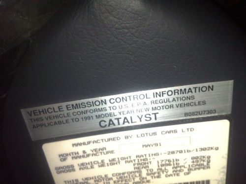 I drove this Lotus today 10/25/2013, this Elan has incredible pick up and power. This listing may end at any time due to the fact I am listing this locally as well. Additionally, If you want to stop by and see the car I can set an appointment with you. I will also be glad to drive you in the car. There are an estimated 439 Elan's left in the U.S. This has been garaged since being purchased. The top is in good condition and works fine. This has been a great car. I'm changing my focus. It has served its purpose in my life but it time to move on. When I purchased this from my friend, I had the transmission looked at. I had the linkage rebuild and while it was pulled I had the clutch done as well. I put on a cold air intake and had the front brakes are replaced within the last 15,000 miles along with the front rotors. I have the old rotors. I have new brake pads for the rear. Additionally, I have the original intake system and the horn which was removed for the new cold air intake system. There is a trickle charger on the battery. A car cover is included. The tires are in great shape with about 10,000 miles on them, Yokohama S-Drives. I have tried to think of everything. If I can find them there are toy cars and a shop manuals which will go with the car. Here is some history on the Lotus Elan M100, launched in 1989, was a two-seater, convertible sports car designed by Peter Stevens and produced by Lotus whilest under the ownership of General Motors. The M100 Elan’s cornering performance was undeniable. On release the Elan was described by Autocar magazine as the quickest point to point car available. The Elan M100 has made its mark in history as arguably the finest handling front wheel drive car ever made. Altogether 3,855 Elans were built between November 1989 and July 1992, including 129 normally aspirated (non-turbo) cars. 559 of them were sold in the US. The launch price was lb17,850 for the normally aspirated version and lb19,850 for the SE turbocharged version. A limited edition of 800 Series 2 (S2) M100 Elans were produced by Bugatti between June 1994 and September 1995 when it was discovered that enough surplus engines were available to make this possible. All series 2 cars were turbocharged. The M100 Elan uses a 1,588 cc DOHC Isuzu 4XE1 engine which produces 162 bhp and a 0-60 time of 6.5s and a top speed of about 150 mph.