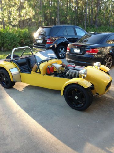 For auction and reluctant sale is my Lotus Birkin Super 7. The car was imported as a rolling chassis and body from South Africa in the early 1990s by a builder of Porsche Speedster replicas who planned to expand his business to include the Super 7. After a few years the car still hadn't been painted or received running gear, so it was sold to a local Newport Beach, Ca. enthusiast for completion. The new owner was a well known car and aviation enthusiast and aviation businessman in southern California. The car was titled as a 1973 lotus 7 for whatever reason. The builder also actually has attached what appears to be an original lotus seven VIN plate to the firewall. I am not sure why this was done but I suspect it had something to do with California DMV rules. In any event, the car has a clean and clear Florida title at present. The new owner wanted a low maintenance, reliable twin-cam four-cylinder engine that had been designed for use in a rear wheel drive car, so a 1.8L Mazda Miata engine and gearbox were considered the best fit. He purchased the miata drive train out of a nearly new miata with 1000 documented miles. The miata owner elected to perform a ford mustang 5.0 l V8 engine swap. Thus, a nearly new drivetrain was obtained. Wilwood disc brakes were installed up front and the solid rear axle received drums. High quality Fly Yellow paint was applied to the aluminum and fiberglass body and the interior was trimmed in black leatherette/vinyl. The car is complete with both a full windshield and the Brooklands screen included. A top, full tonneau and side curtains are included as well. The yellow paint and black interior are in great condition. This Birkin had traveled just 583 miles when I purchased it two years ago and now has 1003 miles on chassis and remains in excellent condition throughout. It is extremely fast and very well set-up. I have owned dozens and dozens of sports cars and this by far has been the most fun car I have ever owned. This statement is made having owned numerous Porsches, Ferraris etc etc. I have had three “real” lotus 7s in the past and frankly the maintenance was so high I didn’t get to really enjoy them much. I was excited about this car in the fact that it could sit for months on a trickle charger and you can hit the start toggle switch and instant idle…no lotus twin cam head gaskets issues etc etc. If you want a really nicely prepared lotus seven that has Japanese-like reliability and low maintenance then this is the 7 for you. It has literally been sitting in my garage and not being driven. I am a busy professional with a family and frankly it needs to be in the ownership of someone who can enjoy her and drive her as she needs. My reserve is less than what a new birkin kit costs. If you have any questions please feel free to email and I will respond asap.