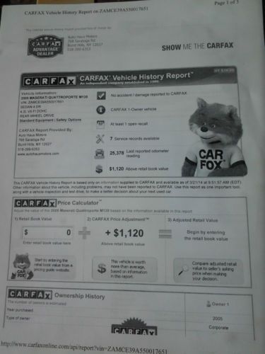 2005 Maserati Quattroporte Chassis# ZAMCE39A550017651 Color: Burgundy/Bordeaux See pictures here: https://plus.google.com/photos/111355593055710048515/albums/5996691788644868881?banner=pwa