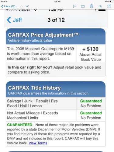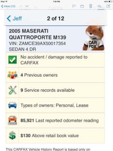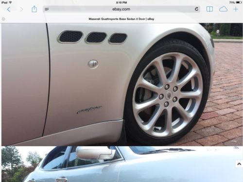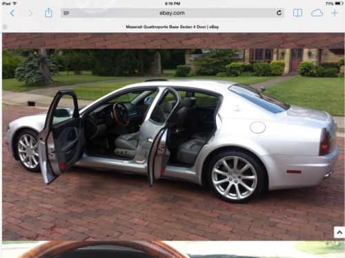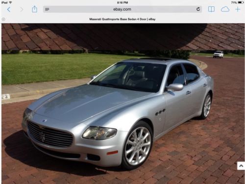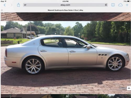 2005 maserati quattroporte. Great looking and running car. Has ferrari motor and transmission loaded with every option including sunroof and DVD player. Tire pressure light is on and has a marker light bulb out. I bought this car 3 monthes ago it's really neat to have but too many other cars and time for a new truck 3042152375