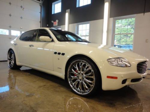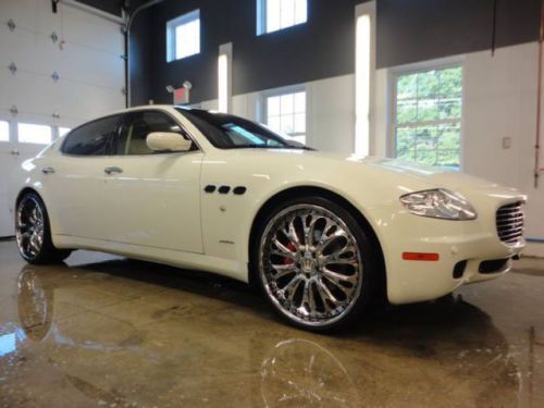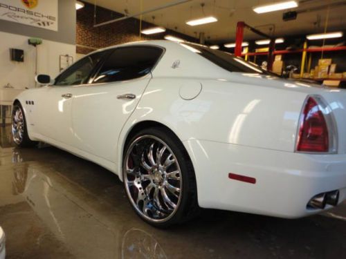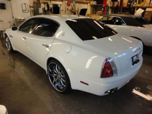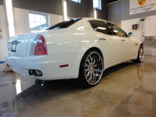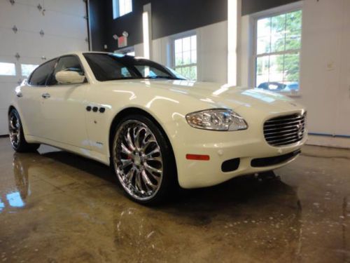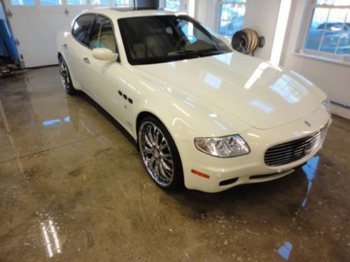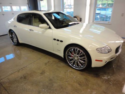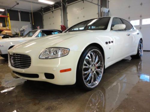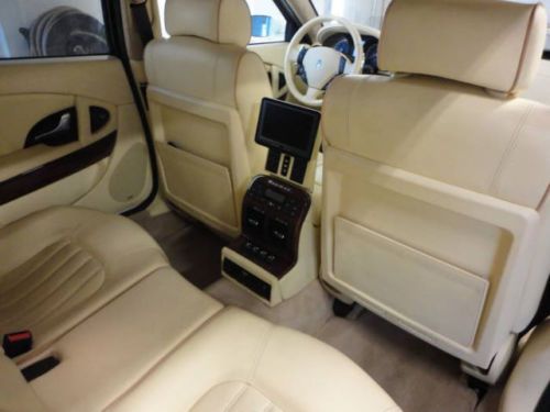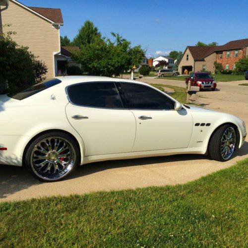 You are looking at and bidding on a 2006 Maserati Quattroporte Executive GT. This car is absolutely beautiful and you will fall in love with it immediately. She really is gorgeous. Purs like a kitten and drives beautifully. Paddle shifting or automatic option. With aftermarket "tube" Ferrari exhaust she will roar down the road and turn heads. 22 inch low pro rims and tires (scratches on lip of back rims), DVD player, all cream leather interior with heated and cooled seats all the way around. Navigation screen with excellent sound system. Tan suede head liner and large retractable sunroof. All power everything and a sport mode activation button for higher performance at high speeds. I really cannot say enough about this car. I have entered and WON several car shows with this beauty, and it was featured in the Philly and NYC auto shows in the DUB display. (picture included) Bid with confidence please and you may call me with any questions. 500.00$ deposit via paypal is required upon winning. The rest is due at pickup.
