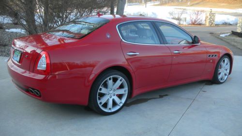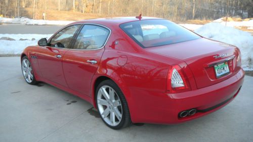 JUST REDUCED $4000!!!! PRICED TO SELL QUICKLY!! MAKE AN OFFER! 2011 Maserati Quattroporte S in a custom ordered Ferrari Red ($2900 option). The MSRP of this car was $142,085. I believe this is the ONLY car in the country in this color for sale right now. This car is LIKE NEW. Not a single scratch or dent or any blemish on this car. Recently serviced so NOT EVEN AN OIL CHANGE necessary for another 10,000 miles- see picture showing maintenance info on the car's screen. The car has FULL FACTORY WARRANTY till May 2015. Currently the car has approx. 13,200 miles as of April 14, 2014. The car is in perfect condition and was last serviced on April 23, 2013 by Maserati of Troy, Michigan (Suburban collection of Troy). This was the BIG 12,000 mile service which includes Engine Drive Belt, Coolant Pump belt, Brake fluid flush, Engine air filter, HVAC pollen filter, full under body and brake system inspection etc. Cost of this service is approx. $2500. Other options include: Paddle Shift ($1350) Front and Rear Park Sensors ($800) Carpet Neckline Color upon request in Red ($100) Out of Range Paint Color (Ferrari Red) - ($2900) Wood/Colored Leather Steering wheel ($1600) Walnut Briarwood Int. Bois Rose ($1000) Sunroof Heated seats Rear reclining seats Power Rear Sun Screen Cooled Cup-holders Perfect Carfax, no accidents, damage or any kind of defects. Clear Title is in my hand so it will be a quick transaction, I have all books, both keys and service records. The tires are in very good condition with atleast another 12,000 miles worth of tread left. The wheels have no scratches. I can email a copy of the window sticker if you would like to look at it. Feel free to email me at nirmalpshah@yahoo.com if you have any questions. I will be happy to provide my phone number to serious buyers but am not posting it here for privacy from marketing calls. Thanks for looking! |