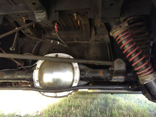 Turbo 350 automatic transmission. Ten bolt rear differential. Coil over shocks. Heavy duty rear torsion bar. Rear anti roll bar. Converted from four to five lug wheels with all proper components. Undercarriage is not detailed, but clean, solid, and functionally built.