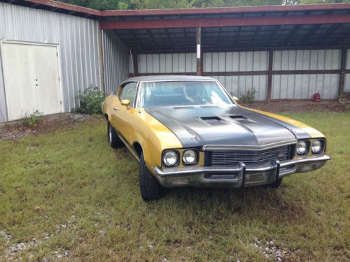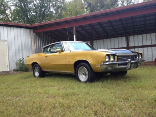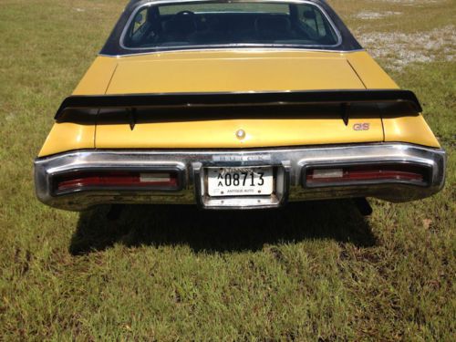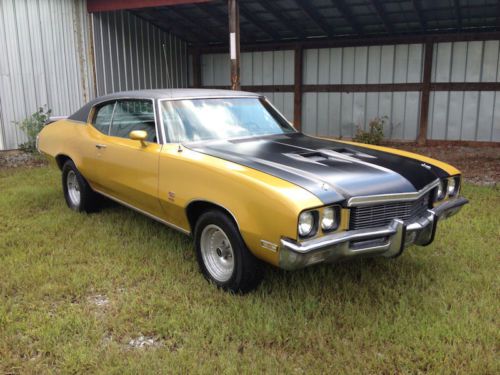 GREAT OPPORTUNITY TO OWN A REAL 1972 BUICK GS 350, NOT A CLONE OR REPLICA. AUTHENTICITY IS CLEARLY VERIFIED IN THE VIN NUMBER, WHICH IS DECODED BELOW. A VERY LIMITED PRODUCTION RUN OF 5,896 GS 350'S WERE BUILT, AND ONLY 5,526 WITH AUTOMATIC TRANSMISSION. THESE PRODUCTION NUMBERS ARE REASONABLY CLOSE TO THE CHEVELLE LS6 AND LS5 NUMBERS. THIS IS AN OLDER RESTORATION THAT HAS SOME NICE, OLD SCHOOL PERFORMANCE ENHANCMENTS ADDED BACK IN THE DAY. ORIGINAL 350 ENGINE. NICE, DRIVER QUALITY MUSCLE CAR. ONE REPAINT, MANY YEARS AGO. RAM AIR. NEW VINYL TOP. RUNS AND DRIVES AS WELL AS IT LOOKS. RELIABLE ENOUGH TO DRIVE ANYWHERE. THE ONLY PERFORMANCE CARS EVER RELEASED FROM THE BUICK STABLE WERE THE GS (ALONG WITH GSX), AND THE GRAND NATIONAL. HISTORY PROVES THAT THESE WERE SOME OF THE BEST EXAMPLES OF THE ERA. PLEASE READ THE COMPLETE AD, VIEW ALL THE PHOTOS, AND CLICK ON ALL THE LINKS FOR THE FULL DESCRIPTION ON THIS RARE MUSCLE CAR. ODOMETER MILEAGE SOMEWHERE IN THE '70'S, BUT ACTUAL MILEAGE UNKNOWN.