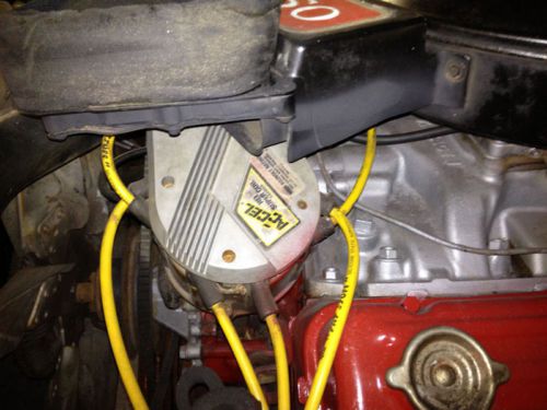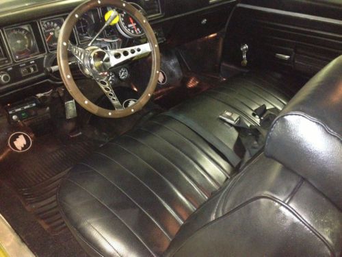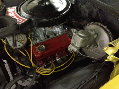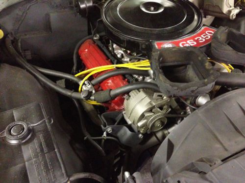 Original 350 Cu. In. engine. Edelbrock four barrel carburetor mounted on a TA Performance Stage 1 dual plane aluminum intake manifold. This intake manifold not only reduces vehicle weight by 40 pounds, but the carb/intake combo can increase horsepower by 35 or more. Ram Air. Hydraulic cam and valve train. HEI distributor with Accel Super Coil. Accel 8mm silicone wires. Headers with dual exhaust, free flow mufflers. Turbo 350 automatic transmission. Ten bolt rear differential. Heavy duty suspension with torsion bars. Power steering. Power disc brakes. Had air conditioning, but compressor and hoses are missing, along with air box. Firewall has a custom cover where box was mounted.. HERE IS A LINK TO THE INTAKE MANIFOLD INSTALLED ON THIS CLASSIC: