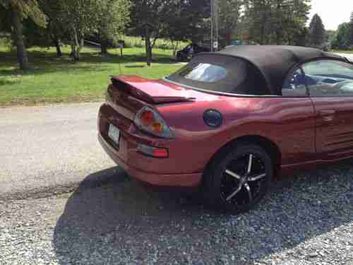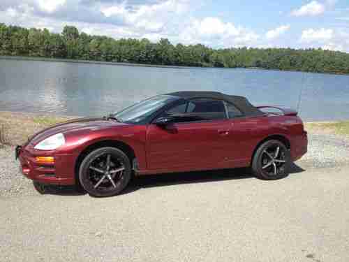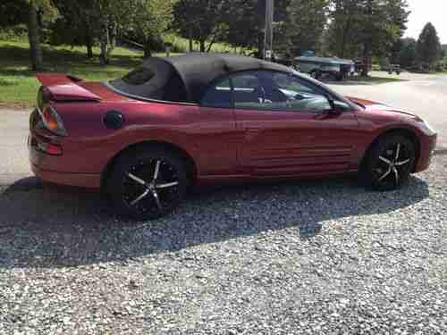 UP FOR BID TODAY IS MY 03 ECLIPSE SPYDER 5 SPEED HAS ENKEL WHEELS ROLLBAR NEW FACTORY TOP. CAR RUNS GREAT WITH LOW MILES SUMMER IS COMING THIS IS A REAL HEAD TURNER. BUYER PAYS SHIPPING. CAR IS FOR SALE LOCALLY AND RESERVE THE RIGHT TO END AUCTION EARLY. BRING YOUR CASH BUY IT TODAY