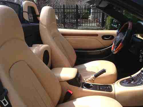 The perfect color combination....black exterior, black convertible top, tan leather with piping, and black carpets. The car is designed by Giorgio. The styling is timeless and still attracts attention and photos.