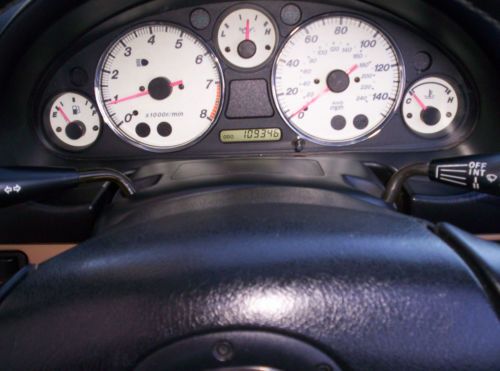 THIS 0NE OWNER TEXAS MIATA RUNS AND DRIVES ABSOLUTELY PERFECT. THE MOTOR, TRANSMISSION AND SUSPENSION ARE RUNNING AND SHIFTING SMOOTHLY AS IT SHOULD. NO SHAKES, SHIMMEYS OR RATTLES. NO SUPRISES. THE PAINT AND BODY ARE AVERAGE WITH A FEW DINGS AND CHIPS (NOTHING OUT OF THE ORDINARY FOR A 12 YEAR OLD CAR). IT ALSO HAS A FEW HAIL DINGS IF YOU LOOK VERY CLOSELY. I AM PICKY. NOTHING WOULD EVEN SHOW UP IN PICURES TO SHOW YOU, VERY MINIMAL. THE INTERIOR IS ABOVE AVERAGE. THE LEATHER SEATS ARE STILL IN GOOD SHAPE AND THE CARPET IS GOOD AS WELL. AGAIN, NO SUPRISES. I HOPE THE PICTURES SHOW JUST HOW CLEAN THIS LITTLE MIATA IS. TEXAS ONE OWNER CAR, NO RUST!!! NOW ABOUT THE AUCTION: