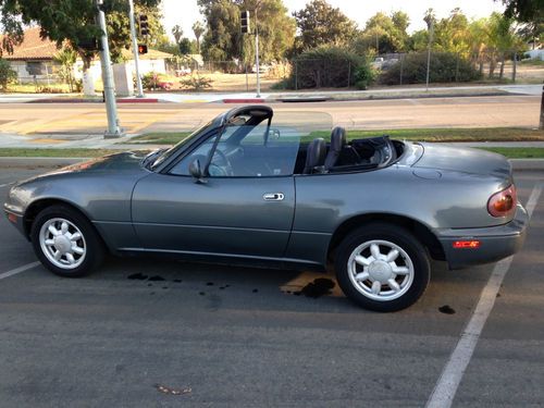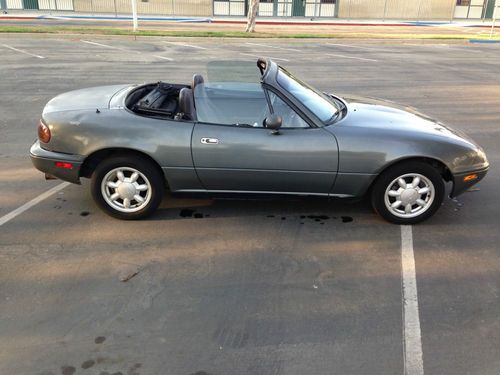 FOR SALE IS 1992 MAZDA MIATA 1.36 ENGINE, AUTOMATIC, A/C , CONVERTIBLE, 4 CYLINDER, CLEAN TITTLE, REGISTERED TILL 2014, TITTLE IN HAND, RUNS FINE, ITS A 21 YR OLD CAR, SO IT SHOWS ITS AGE. VERY WANTED LITTLE CARS. PAINT HAS FADED GLOSS BUT NOT BAD, FRONT BUMPER HAS CRACKED PAINT, AIR BAG LIGHT BLINKS. BOUGHT THE CAR BUT UNFORTUNALLY TO SMALL FOR ME. TOO COMPACT FOR ME.